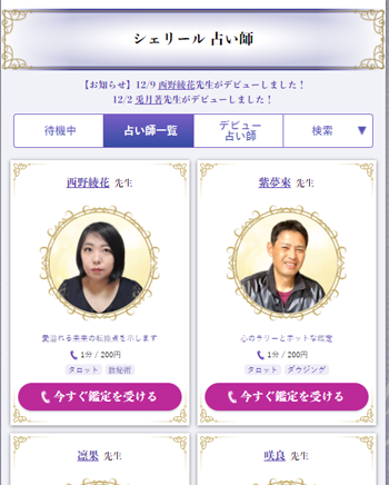マーカー電話占いシェリールのオススメ占い師(2026年2月現在)